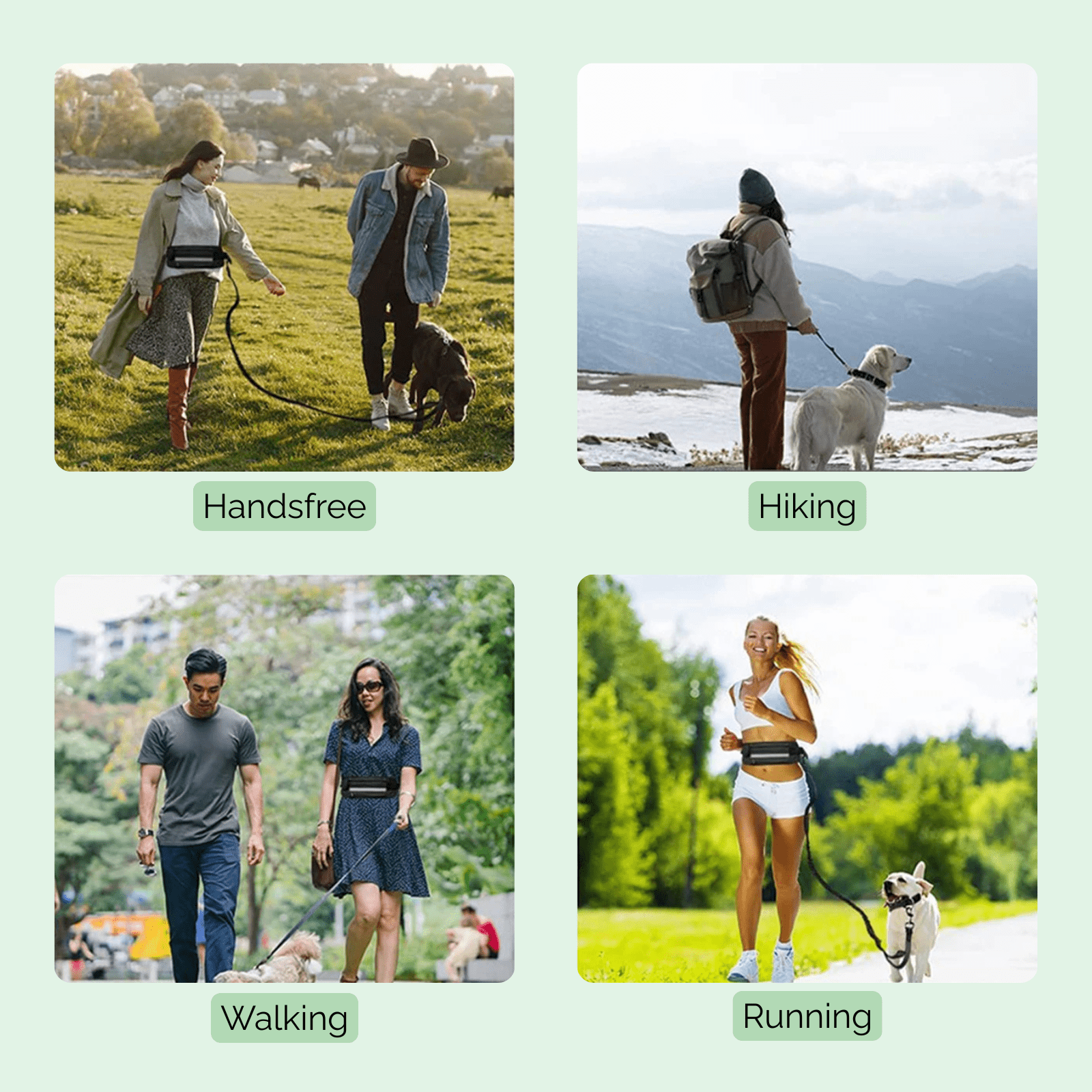 Rennen, wandelen of hiken met je hond wordt een stuk makkelijker met deze schokabsorberende hondenriem voor om je middel. De verstelbare bungee-lijn geeft je hond de vrijheid om te bewegen, terwijl jij je handen vrij houdt. De comfortabele heuptas biedt ruimte voor je essentials zoals sleutels, telefoon en poepzakjes – ideaal voor actieve momenten.