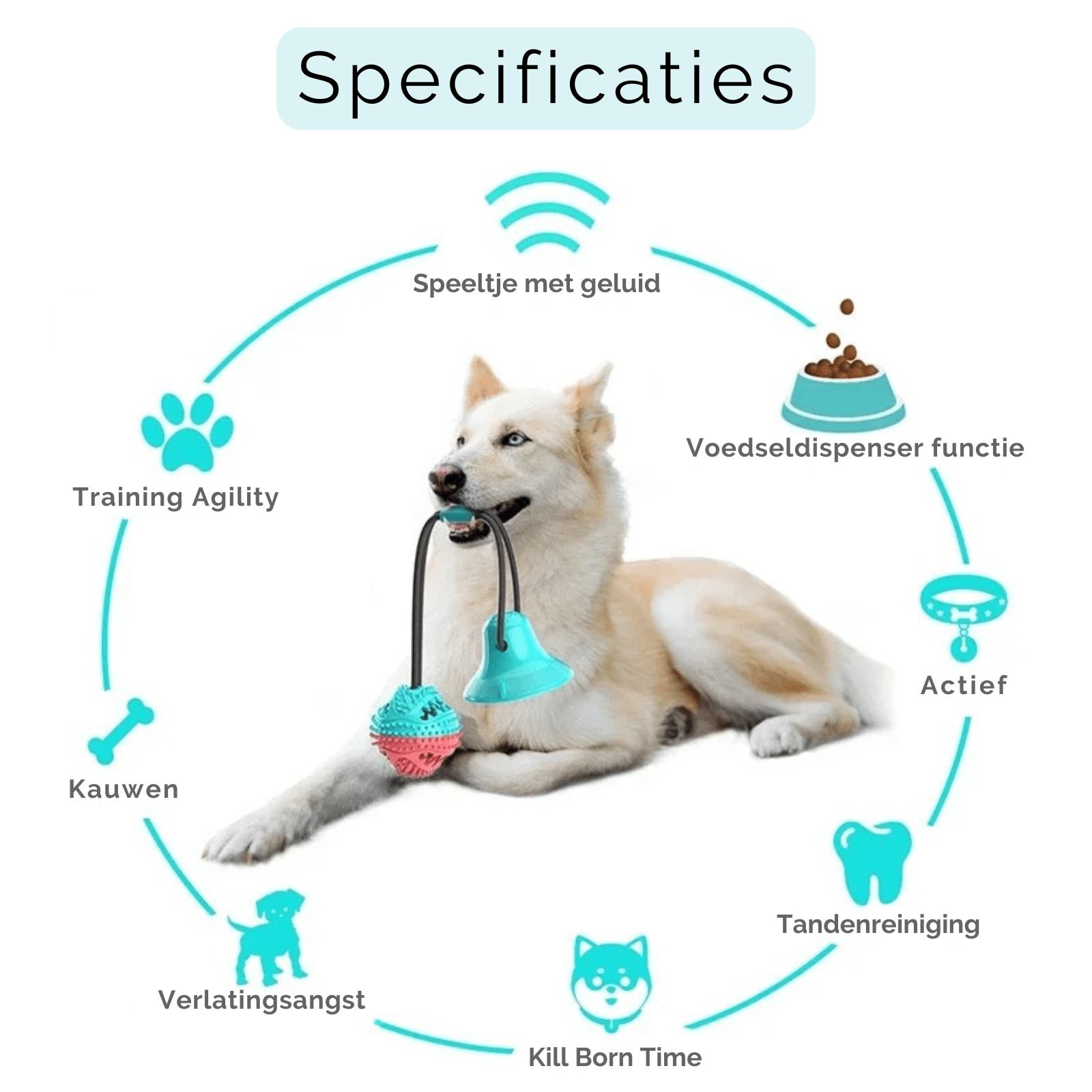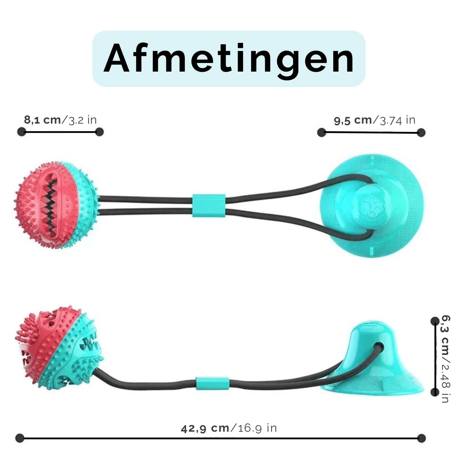 4-in-1 functie – speelgoedbal, kauwspeeltje, slow feeder én tandreiniger