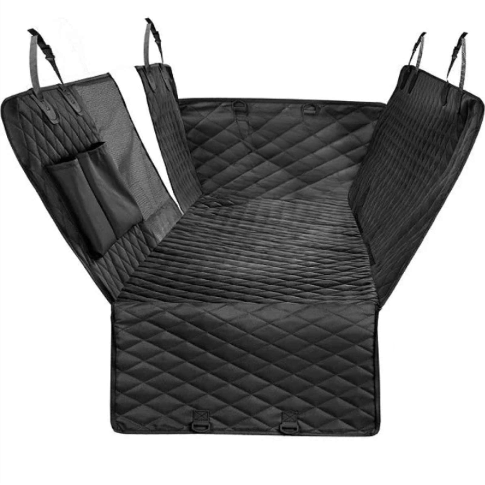 De autostoelhoes is eenvoudig te installeren en past dankzij verstelbare riemen en stevige ankers op vrijwel elke achterbank, SUV of truck. Met royale afmetingen van 143 × 152 cm is hij groter dan de meeste standaardhoezen en biedt hij optimale bescherming, inclusief handige zijflappen die ook de deuren beschermen bij het in- en uitstappen. Na gebruik is schoonmaken een fluitje van een cent: gewoon afspoelen, stofzuigen of in de wasmachine wassen.