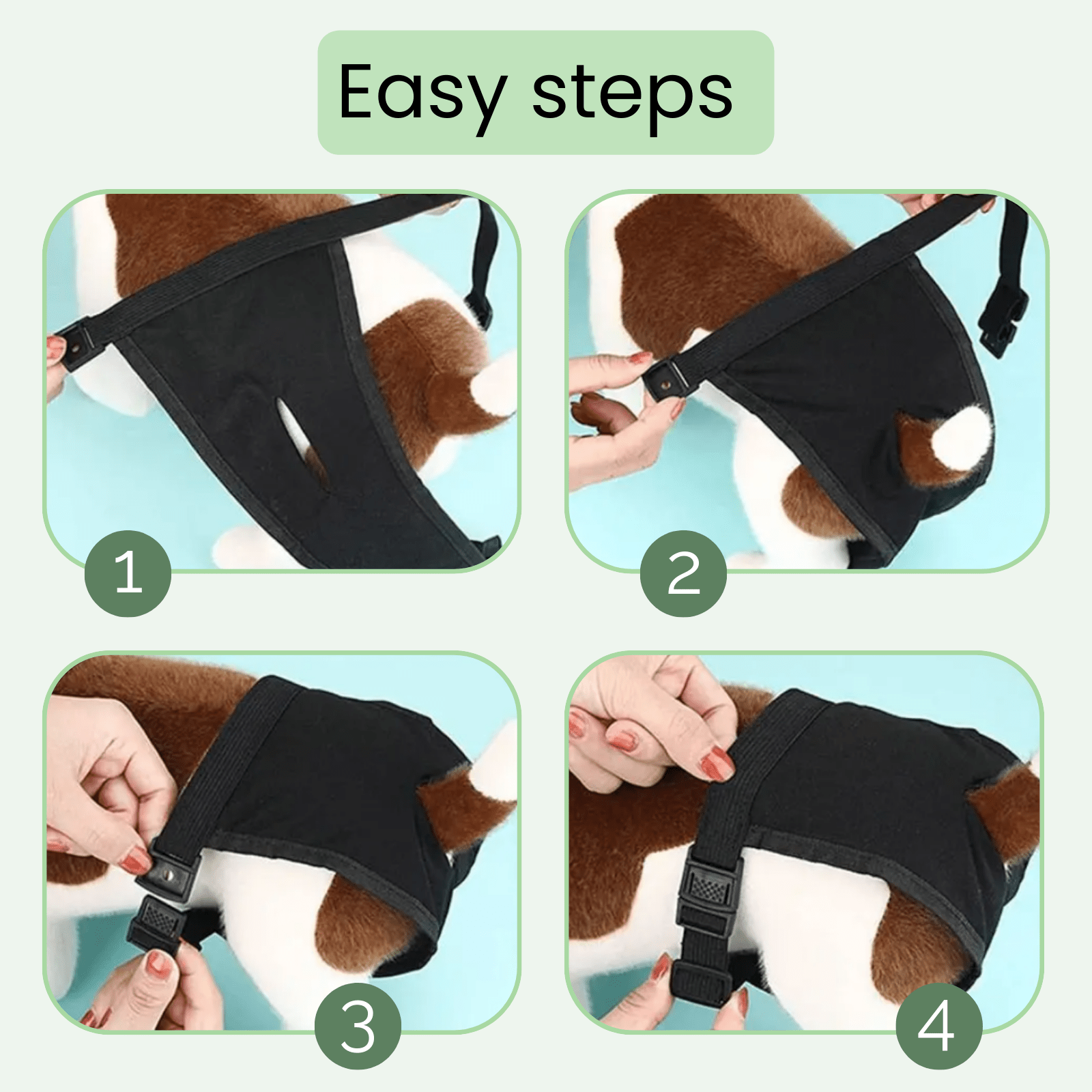 Deze broek is niet alleen geschikt voor honden in hun loopsheid of met incontinentie, maar ook voor ongetrainde puppy's. De broek wordt geleverd met 3 wasbare luiers, waardoor je altijd een schone luier bij de hand hebt.