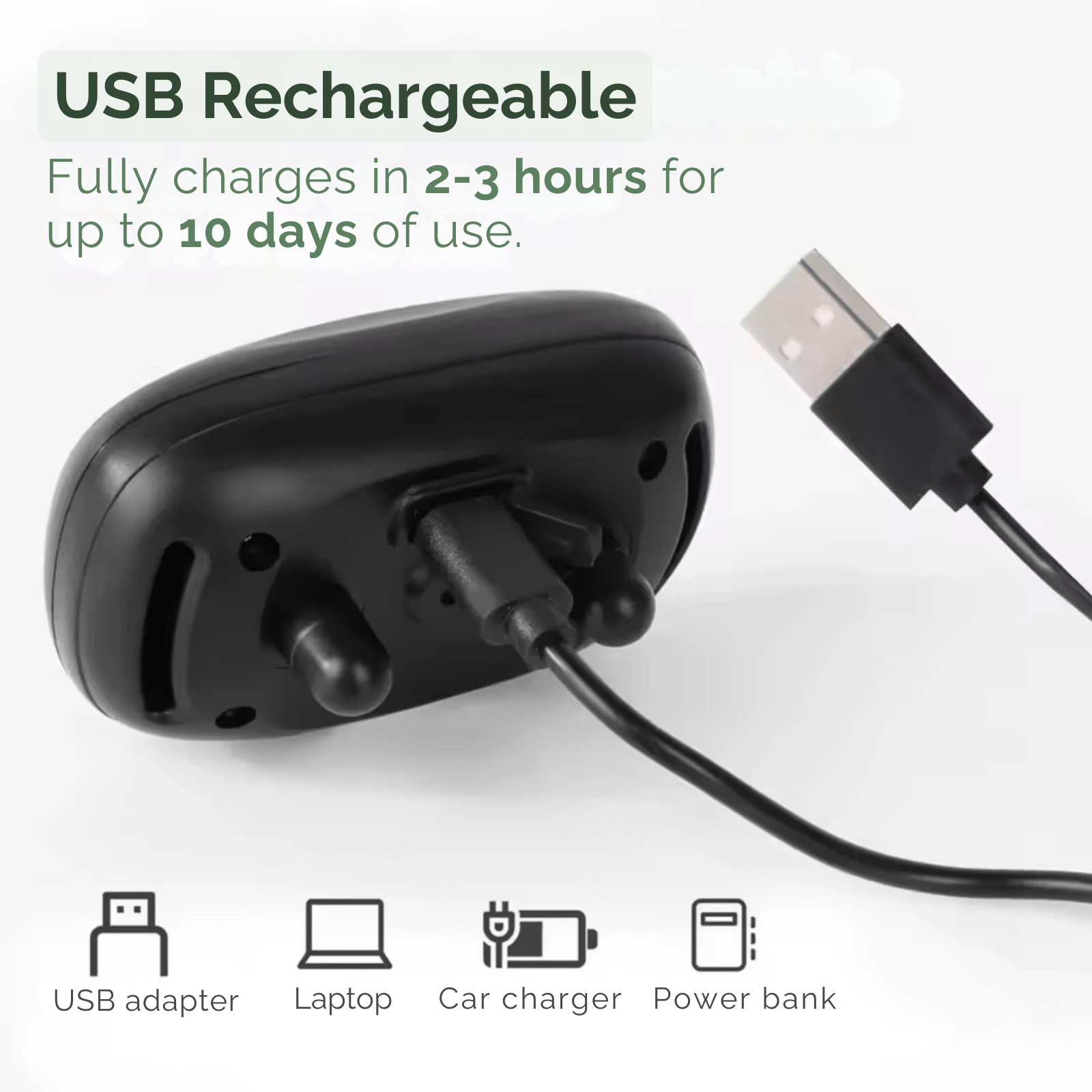 - Wiederaufladbar: USB, 300 mAh Akku, bis zu 60 Tage Standby.