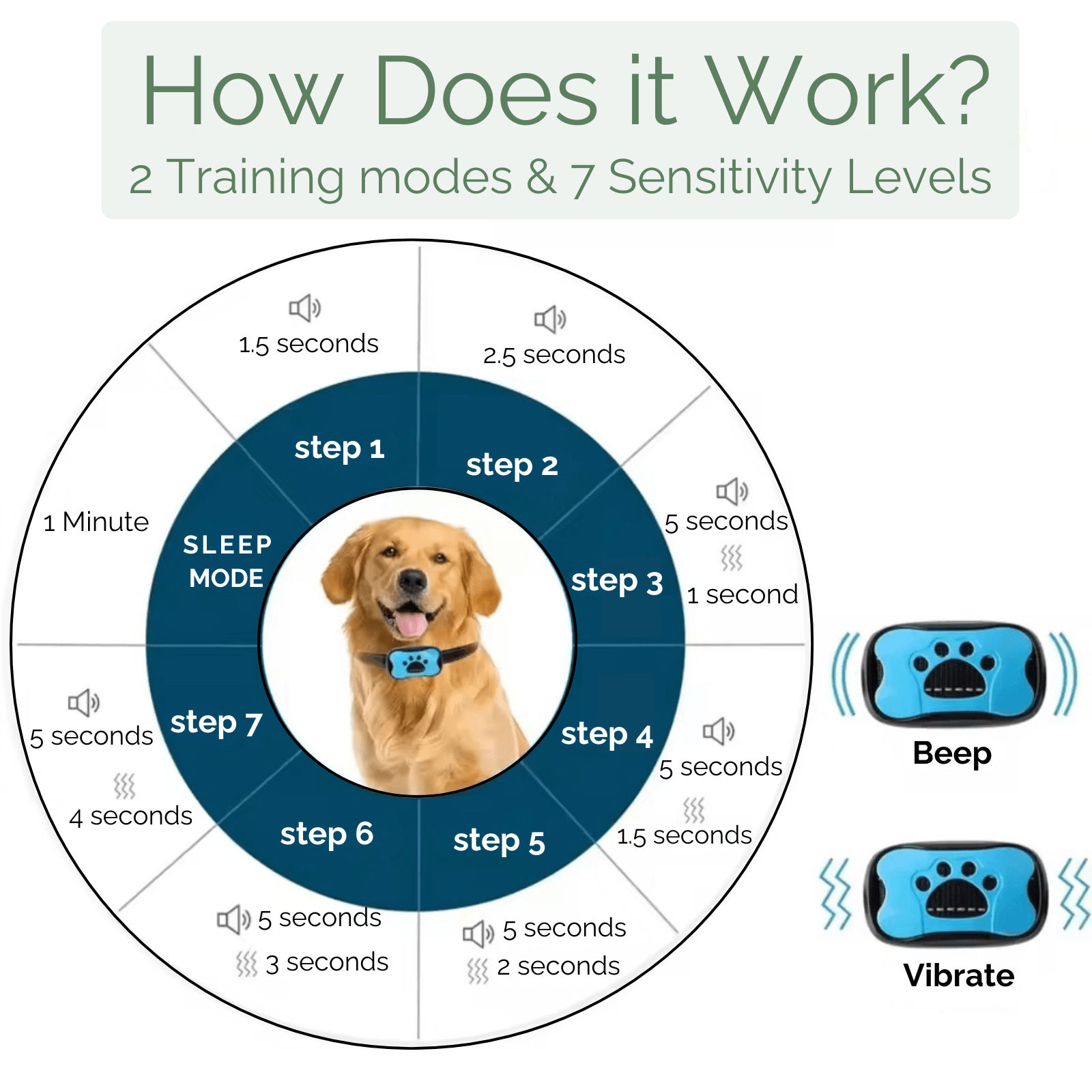 Dieses humane und wirksame Halsband trägt mit einstellbaren Summ- und Vibrationsmodi dazu bei, übermäßiges Bellen zu reduzieren. Es ist auf Komfort ausgelegt und passt dank seiner einstellbaren Länge von 12–56 cm für Hunde aller Größen. Mit 7 Empfindlichkeitsstufen erkennt es Bellverhalten präzise und bietet eine auf Ihren Hund zugeschnittene Trainingslösung.