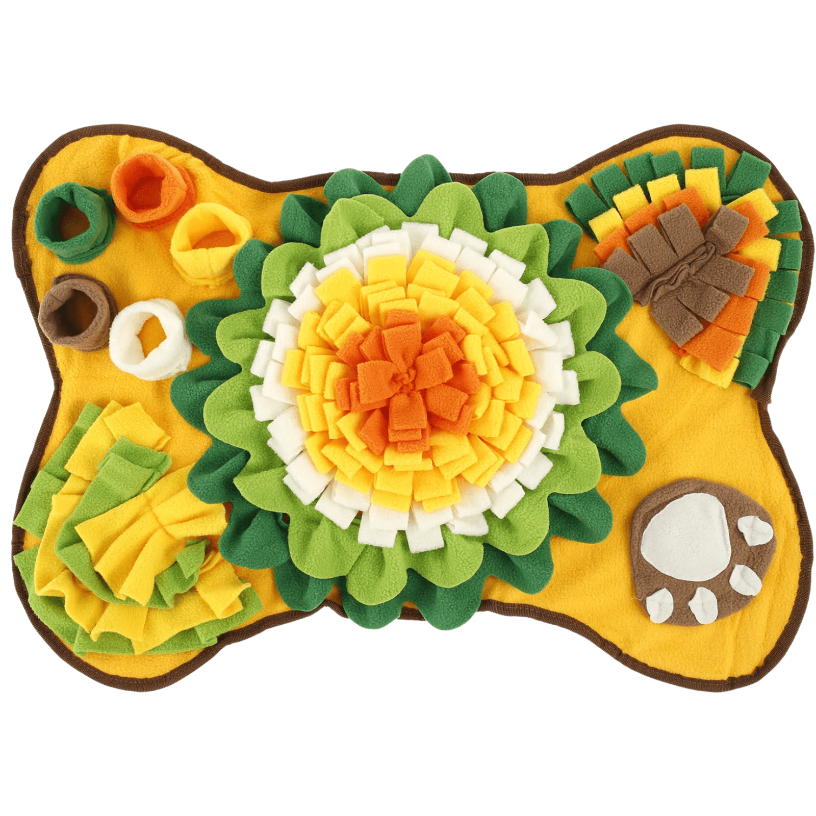 Lassen Sie Ihren Hund spielerisch mit dieser interaktiven Schnüffelmatte trainieren! Dank des raffinierten Blumendesigns und fünf versteckten Näpfchen lernt Ihr Hund, Leckerlis mit der Nase zu finden – perfekt für geistige Anregung, Training und langsames Fressen. Die zusätzlichen BB-Geräusche in den Pfoten machen das Spiel noch lustiger und fesseln die Aufmerksamkeit. Ideal für kleine bis mittelgroße Hunde, die sich schnell langweilen oder zu destruktivem Verhalten neigen.