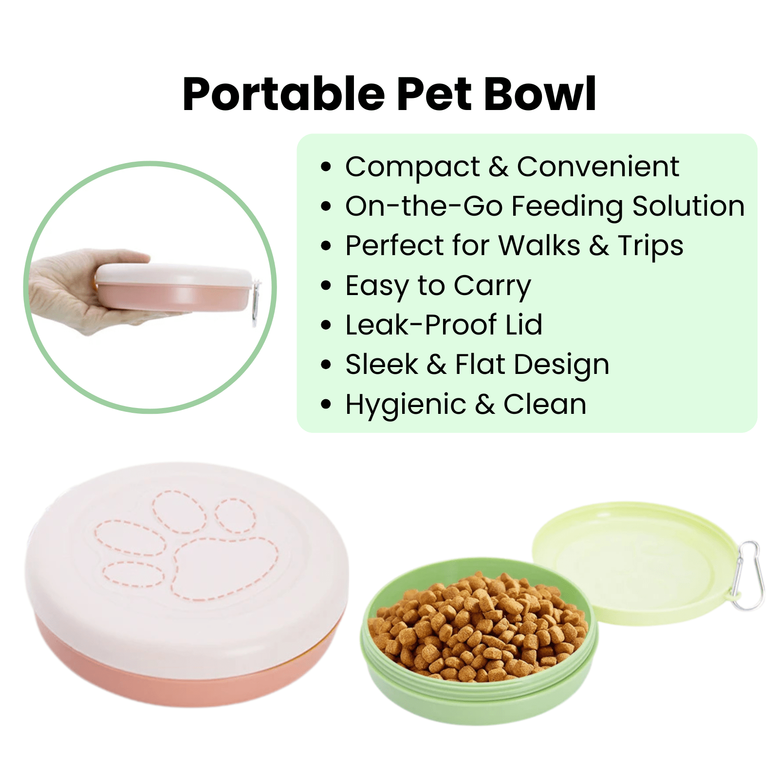 Dank des flachen, schlanken Designs ist dieser Napf leicht zu greifen und mitzunehmen. Der verschließbare Deckel hält Futter und Wasser frisch und verhindert Verschütten – ideal für Ausflüge, Spaziergänge oder Reisen. Mit diesem kompakten und hygienischen Futter-/Wassernapf ist Ihr Haustier immer mit allem versorgt, was es braucht, egal wohin Ihr Abenteuer Sie führt!