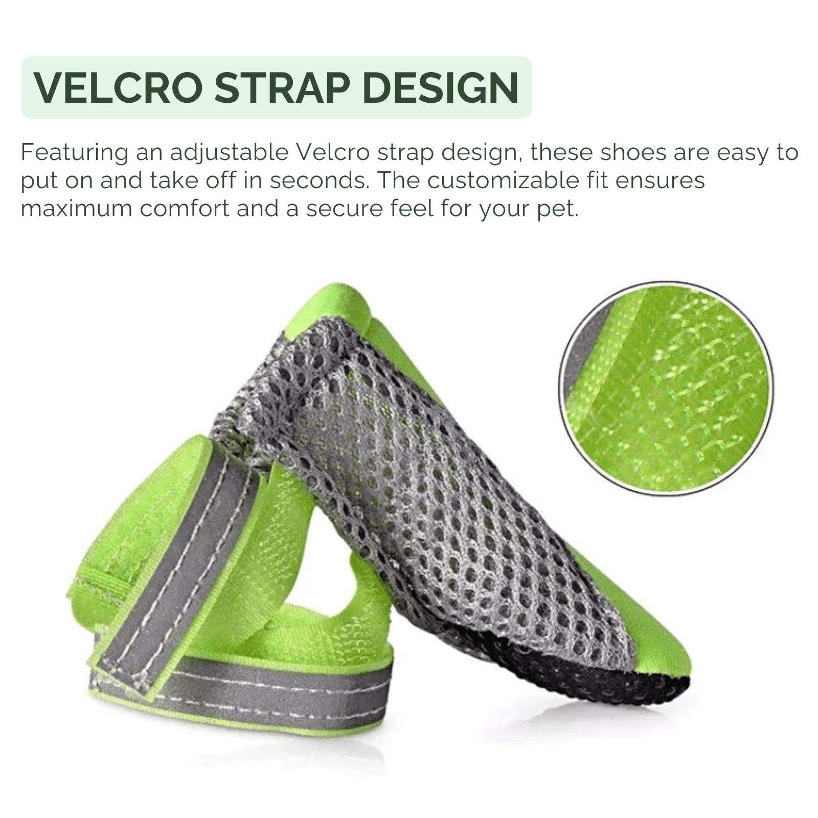 Schützen Sie die Pfoten Ihres Haustiers mit diesen atmungsaktiven, wasserdichten Hundeschuhen! Das 4-teilige Set bietet perfekten Schutz vor Regen, Schnee und unebenem Gelände, sodass Ihr Hund auch an nassen oder schlammigen Tagen bequem spazieren gehen kann. Diese Schuhe bestehen aus hochwertigem, atmungsaktivem Mesh und strapazierfähigem Gummi mit einer rutschfesten Sohle und sind ideal für kleine bis mittelgroße Hunde wie Pudel, Shih Tzus und andere Rassen. Die reflektierenden Elemente sorgen für zusätzliche Sichtbarkeit und Sicherheit im Dunkeln. Dank des praktischen Klettverschlusssystems lassen sich die Schuhe leicht anziehen und bieten eine gute Passform.