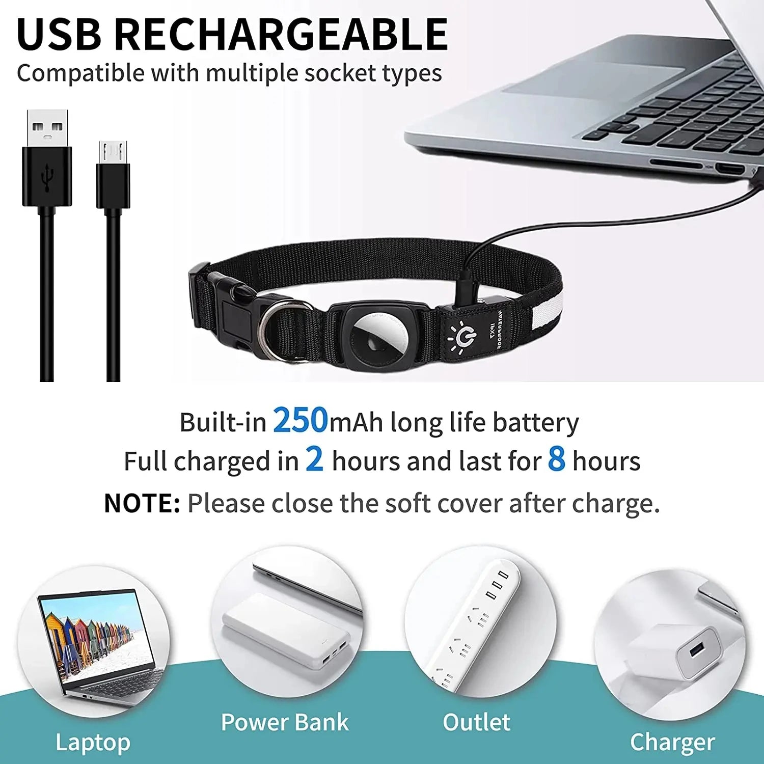 1. Sie möchten Ihren Hund auch im Dunkeln sicher unterbringen und ihn jederzeit finden können? Das GlowTrack Airtag-Hundehalsband ist die Lösung für Besitzer, die Wert auf Sicherheit und Komfort legen. Mit integrierter LED-Beleuchtung und Platz für einen Apple Airtag (nicht im Lieferumfang enthalten) bleiben Sie immer mit Ihrem vierbeinigen Freund in Verbindung – selbst bei nächtlichen Spaziergängen oder regnerischen Abenteuern!