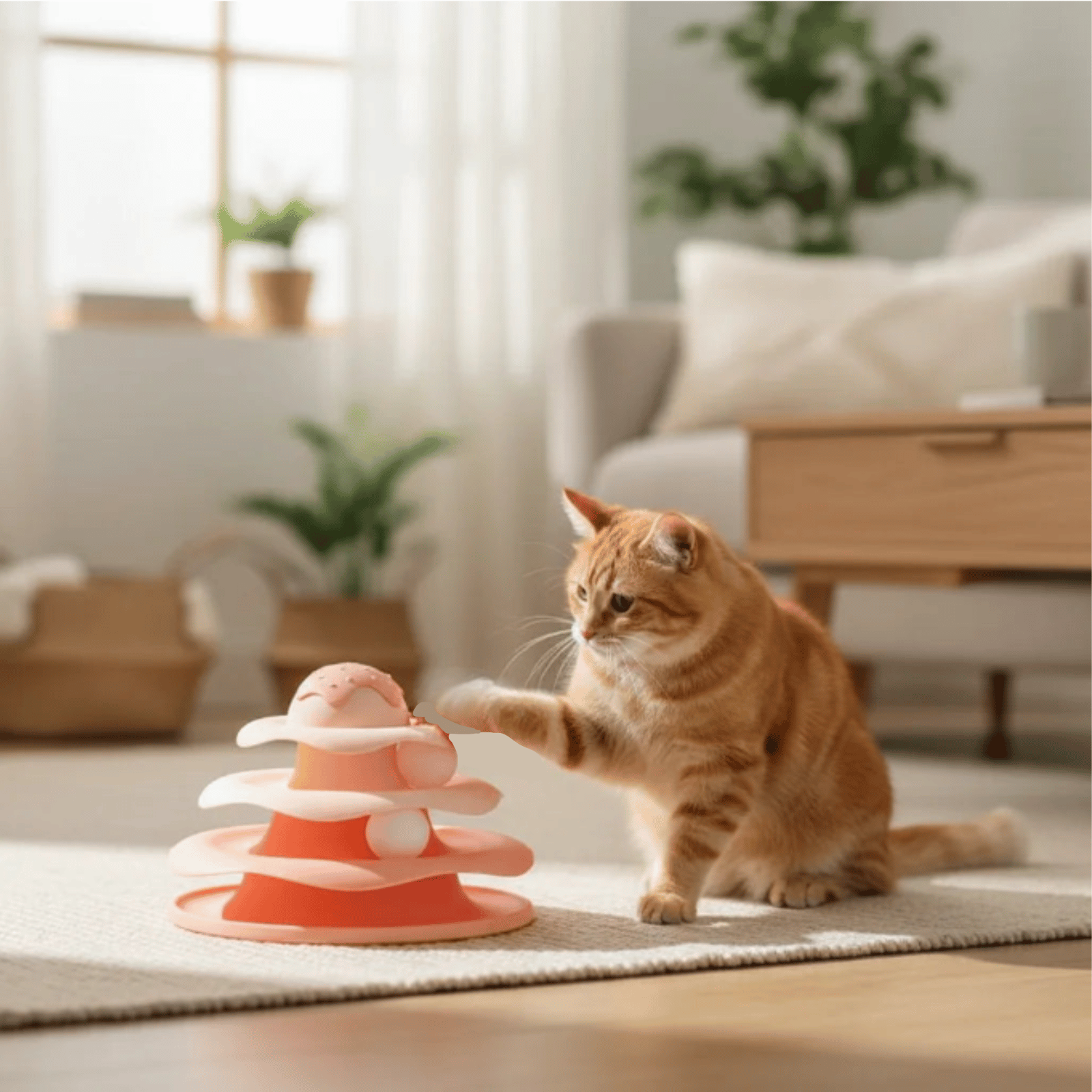 Interaktives Katzenspielzeug – Mehrere Drehtürme mit rollenden Bällen