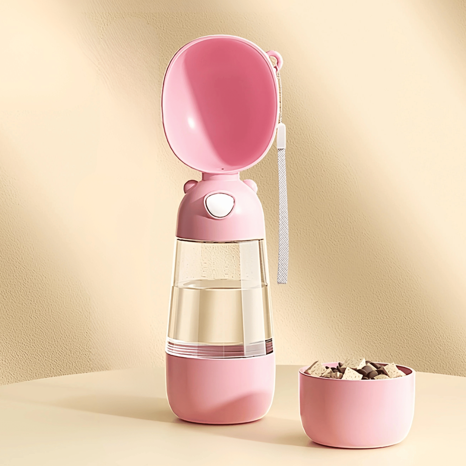 Tragbare Hundewasserflasche mit Futterspender – Auslaufsichere Reise-Hundewasserflasche