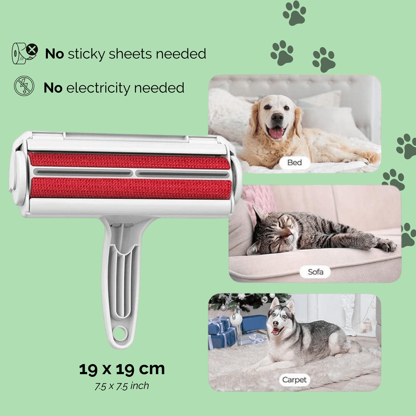 Effortlessly remove loose lint and pet hair from furniture, upholstery, blankets, clothing and other surfaces. Ideal for a clean and hair-free home! -