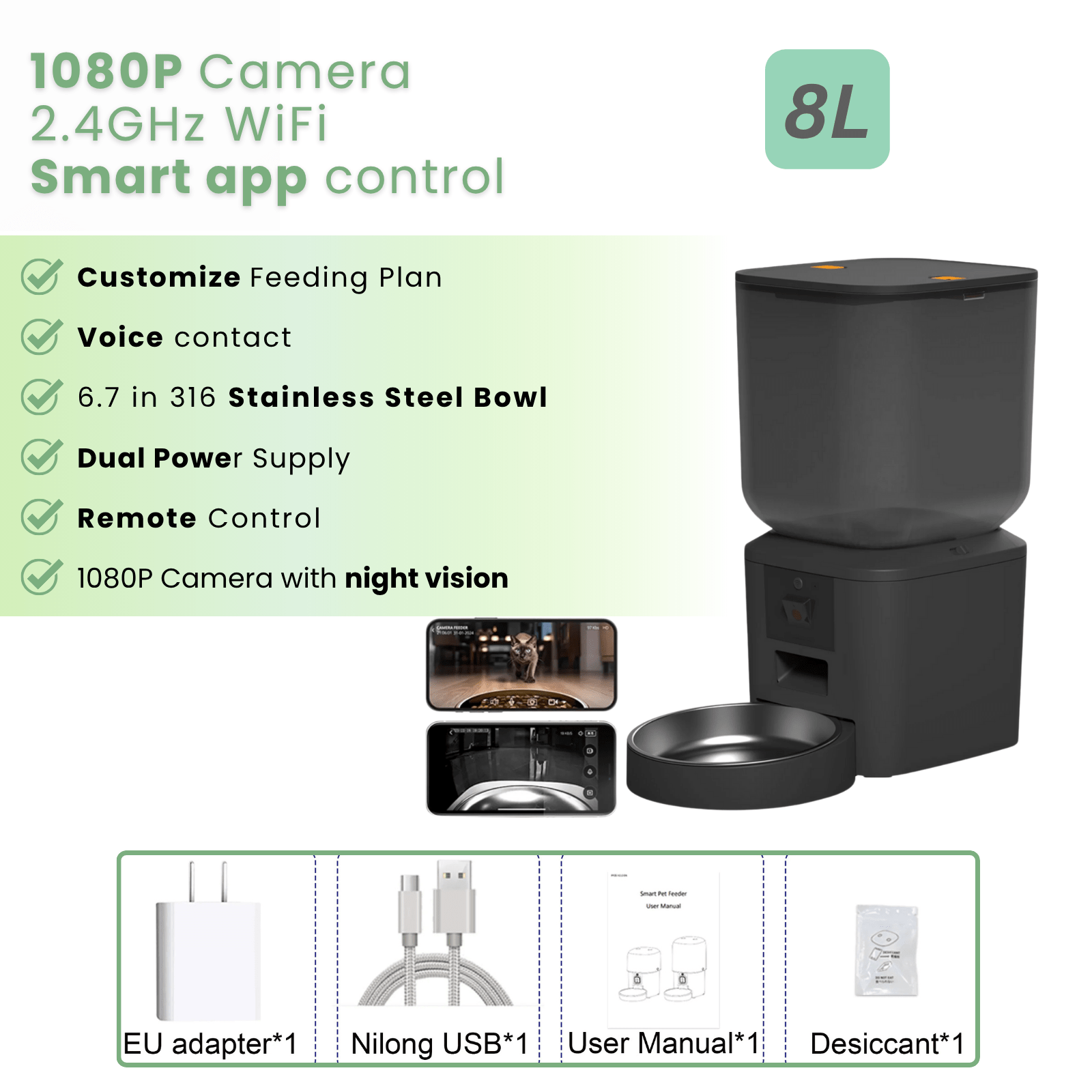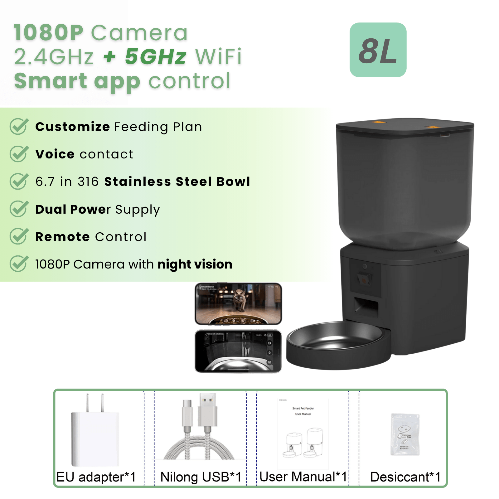 This 8L Automatic Cat Food Dispenser with Camera provides your pet with daily care, convenience, and love—and you complete peace of mind.