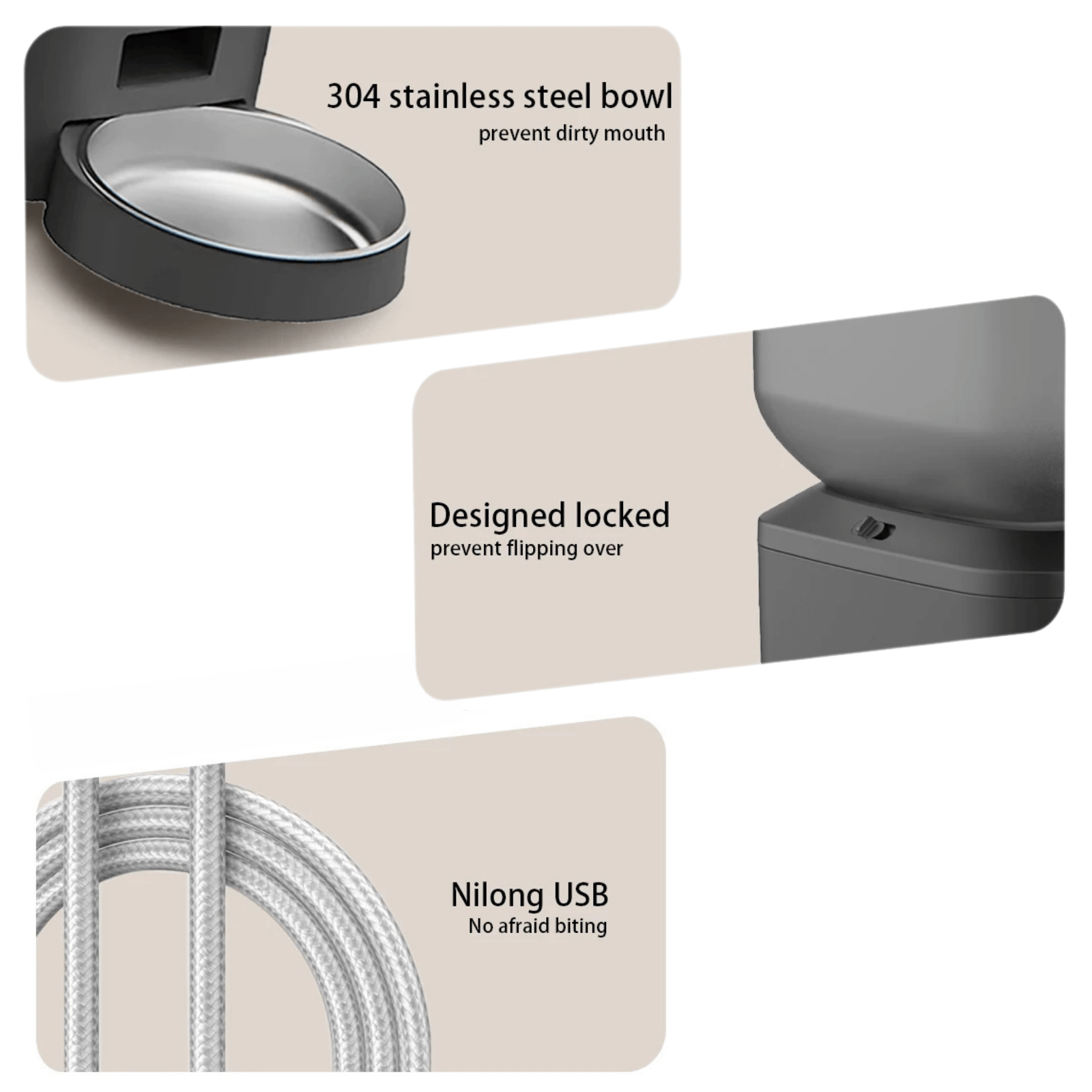 • Hygienic design: Made of food-safe ABS with a stainless steel feeding bowl (Ø 17 cm) that is easy to clean.