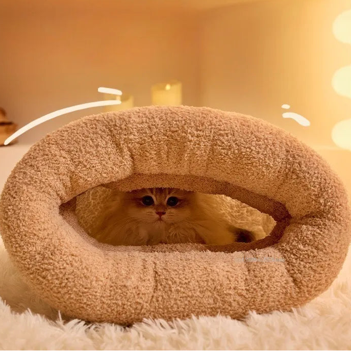 Give your cat the ultimate feeling of safety and warmth with the SnugTunnel . Cats naturally love small, sheltered spaces where they can retreat and sleep undisturbed. The SnugTunnel is specially designed as a luxurious, semi-enclosed nest that retains your pet's body heat. This makes it the ideal sleeping spot for autumn and winter, especially for cats who love to snuggle under a blanket or hide in a den.