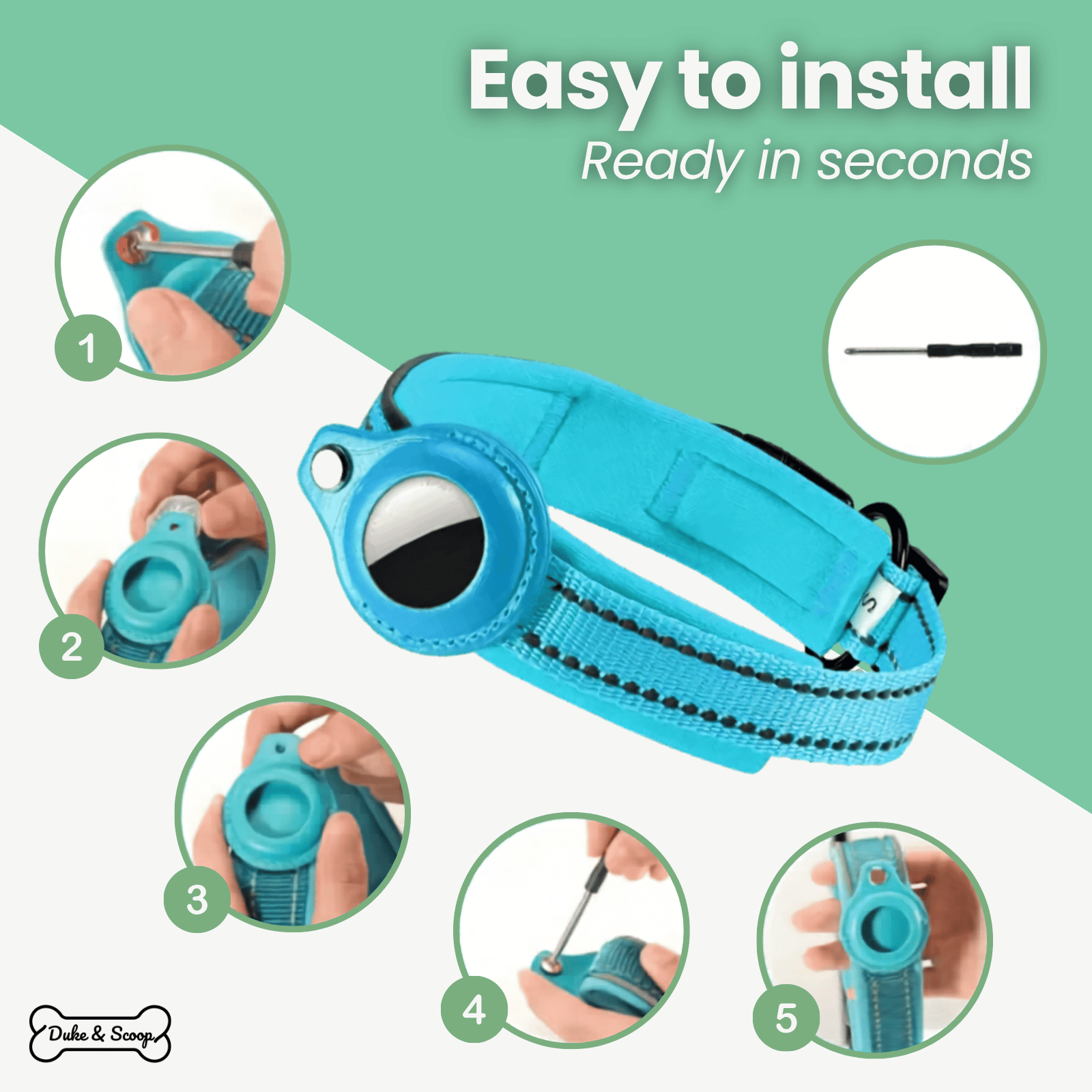 The PetLocate Tracker is the ultimate anti-loss device for your beloved pet, perfectly integrated with the trusted Apple Find My network. Designed for your peace of mind and your pet's well-being, wherever their adventure leads.