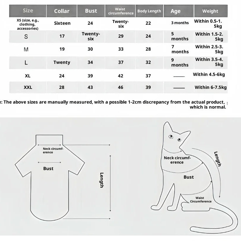 Verkrijgbaar in maten XS t/m XXL, geschikt voor katten met een gewicht van 0,5 kg tot 7,5 kg. -