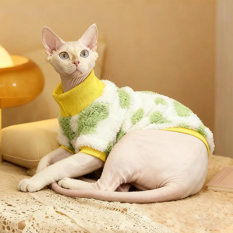 Gemaakt van zacht fleece dat speciaal geschikt is voor de gevoelige huid van naaktkatten. -