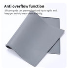 De EetPlek is gemaakt van hoogwaardig, duurzaam siliconenmateriaal dat volledig waterdicht en opvouwbaar is. De mat heeft een speciale anti-overflow rand die gemorst water en voer netjes opvangt, zodat je vloer altijd droog en schoon blijft. Dankzij de super friction-laag en het dikke, antislip oppervlak blijven voer- en drinkbakken stevig op hun plek staan, zelfs bij enthousiaste eters.