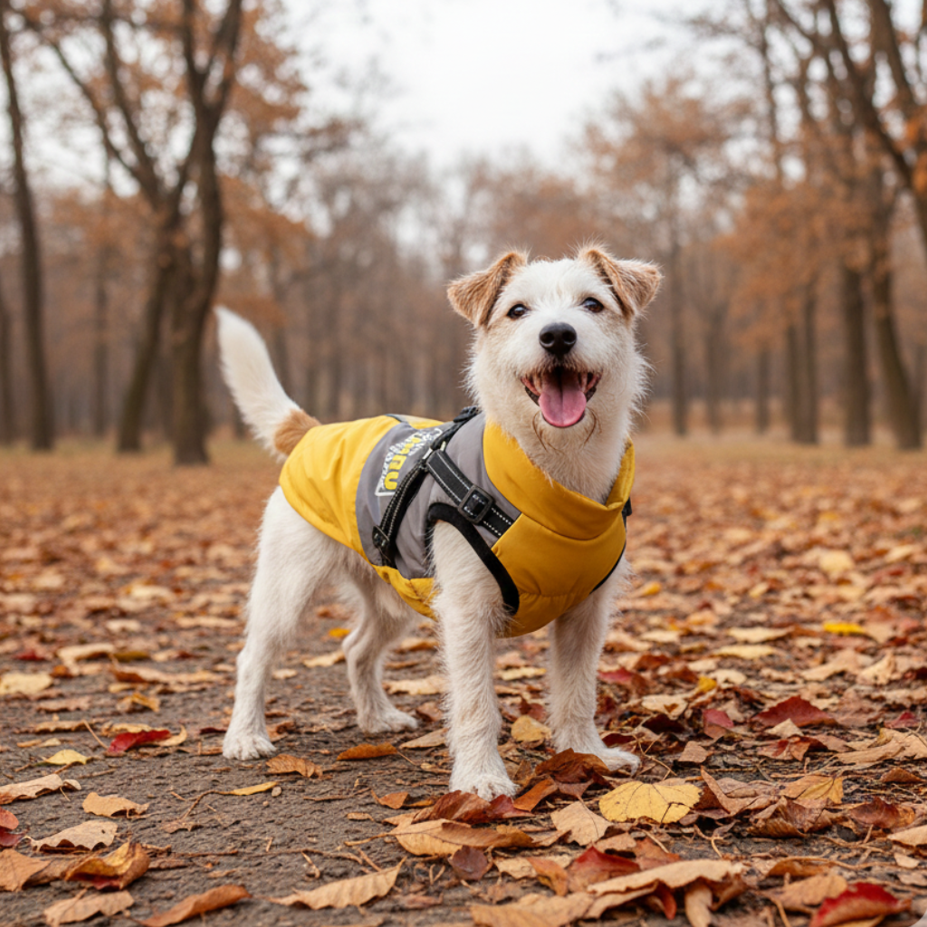 The WarmShell is crafted from a high-quality blend of polyester and cotton, offering the perfect balance of durability and comfort. It features a special breathable lining that prevents overheating, while the windproof and water-repellent outer layer effectively keeps rain and snow out. Its clever design, with an integrated leash neck opening , allows you to easily attach the leash to a harness or collar without compromising insulation. For maximum safety outdoors, the jacket features bright reflective strips , ensuring your little friend is always clearly visible to traffic during nighttime walks. This jacket is specifically designed for small breeds, allowing them to run, play, and explore the world without any hindrance.