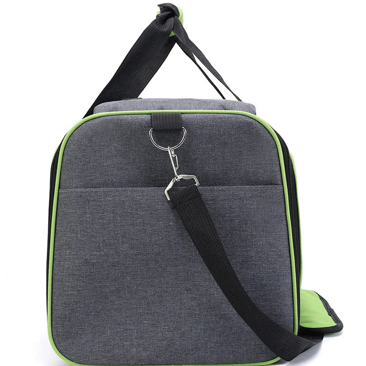 De FlexiFold is gemaakt van duurzame Oxford-stof in combinatie met versterkt mesh-materiaal. De soft-sided constructie dempt trillingen tijdens het reizen en vormt zich naar het lichaam van je huisdier, wat zorgt voor een rustgevend effect. Dankzij de strategisch geplaatste mesh-panelen geniet je dier van 360° ventilatie en een geruststellend uitzicht. Met de verstelbare schouderband draag je de tas comfortabel cross-body, terwijl je de carrier na gebruik weer volledig plat kunt opvouwen.
