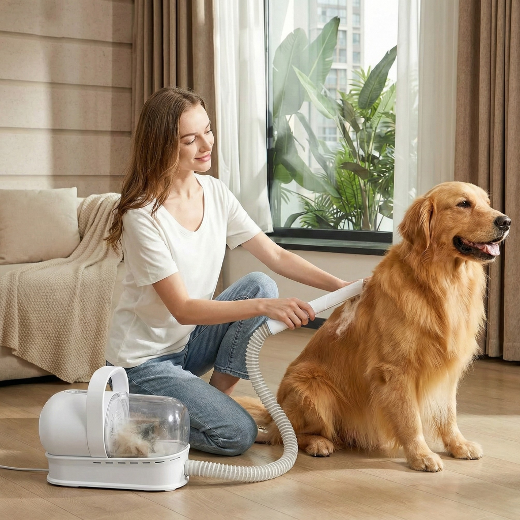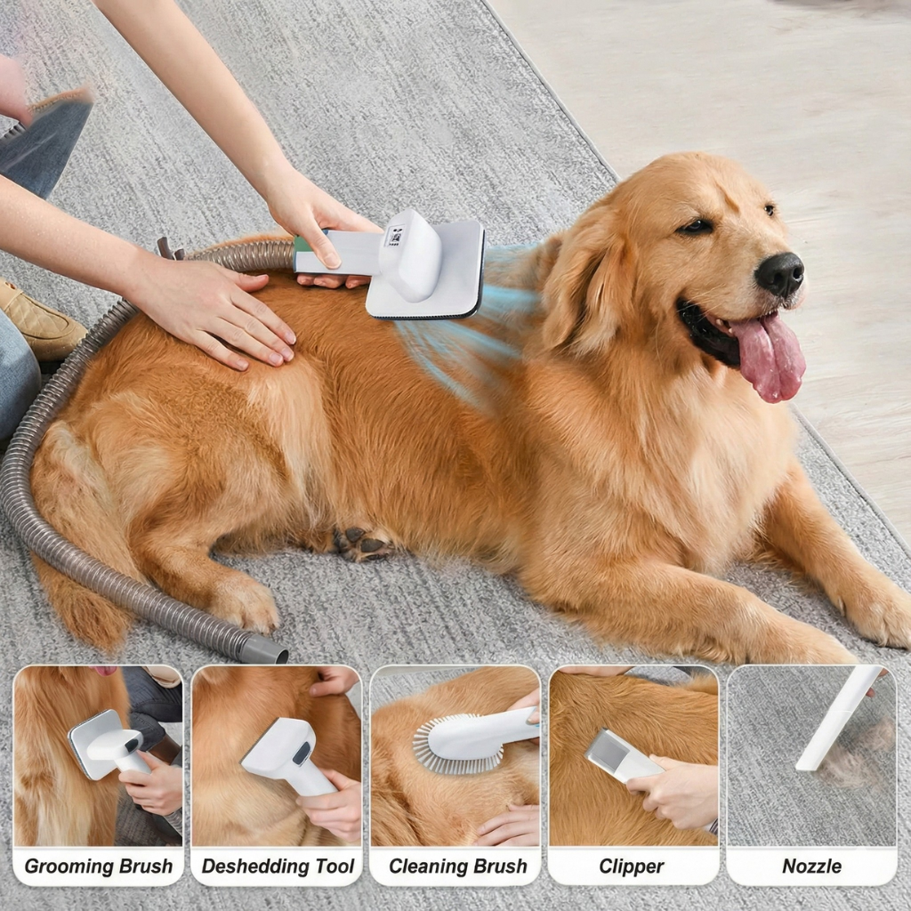 Heb je meerdere huisdieren of wil je de vachtverzorging professioneel aanpakken zonder rommel? Dan is het FurEase Pro Huisdier Trimsysteem precies wat je nodig hebt. Dit complete 7-in-1 trimsysteem combineert een krachtige Dog Vacuum Cleaner, een Cat Hair Dryer en een uitgebreide trimset, zodat je efficiënt, stressvrij én zonder rondvliegende haren aan de slag kunt.