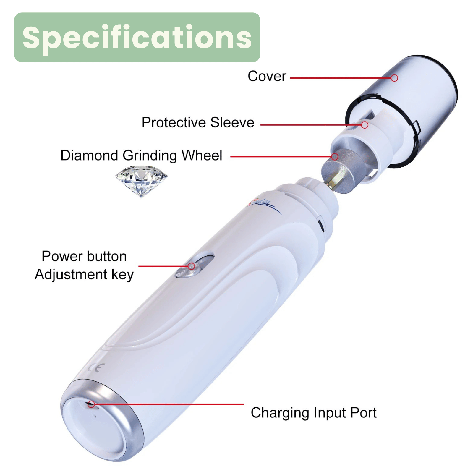 PetPaws – Electric Nail File for Dogs and Cats, White – Rechargeable, 2 Speeds, Quiet and Safe