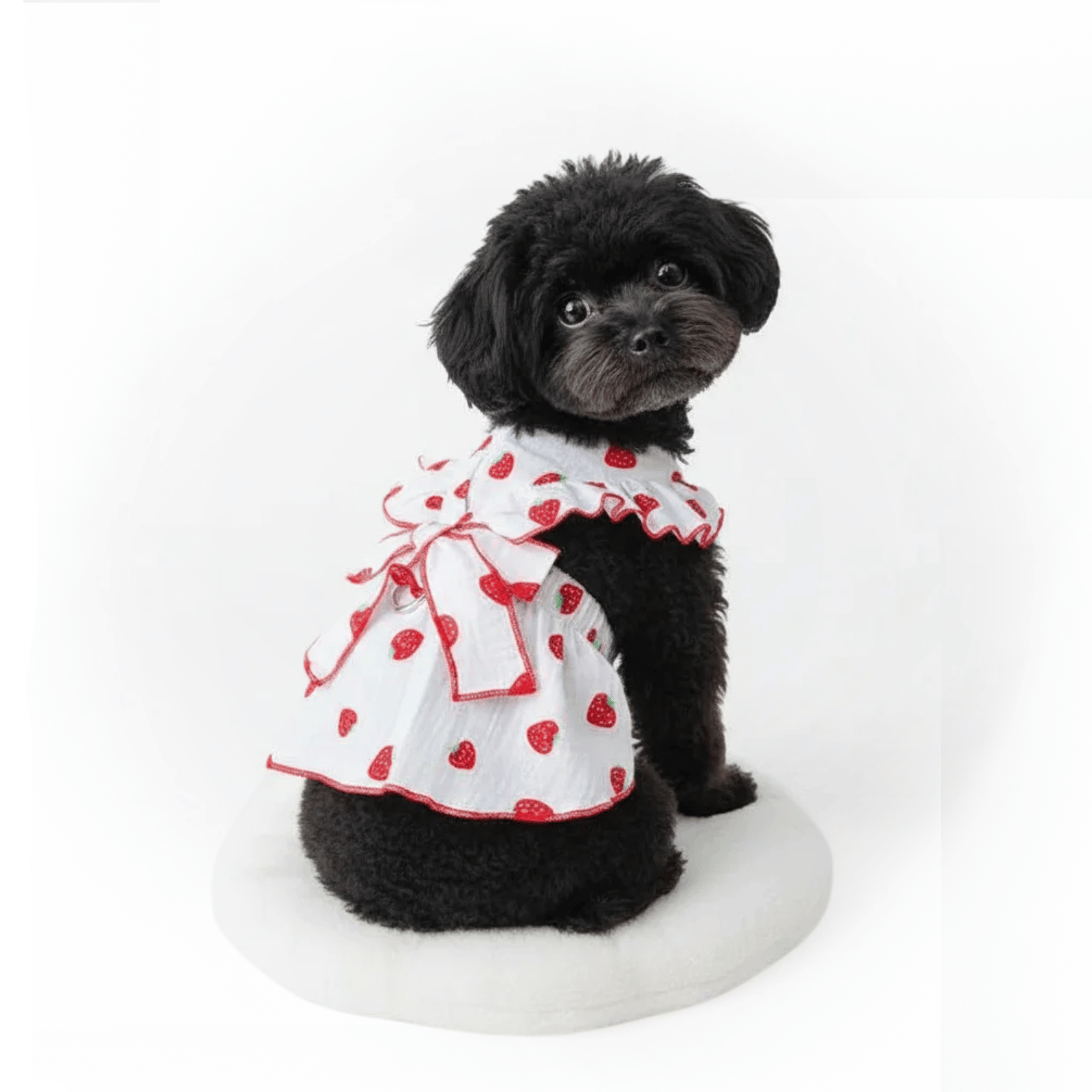 Give your pet an extra dose of cuteness with this summery dress with strawberry print. Made of soft cotton material, airy and comfortable - perfect for warm days. The bow on the back makes it extra sweet and stylish. Suitable for small dog breeds, but also ideal for cats. Nice as a summer outfit or photoshoot costume!