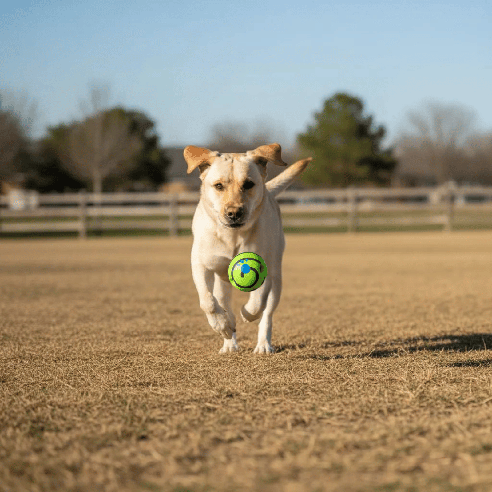 This interactive play ball does not require batteries. Thanks to the clever internal tube noisemaker, the ball makes fun sounds when rolled or shaken, immediately attracting your dog to play with it. The sound adds extra fun and keeps your pup busy all day long.