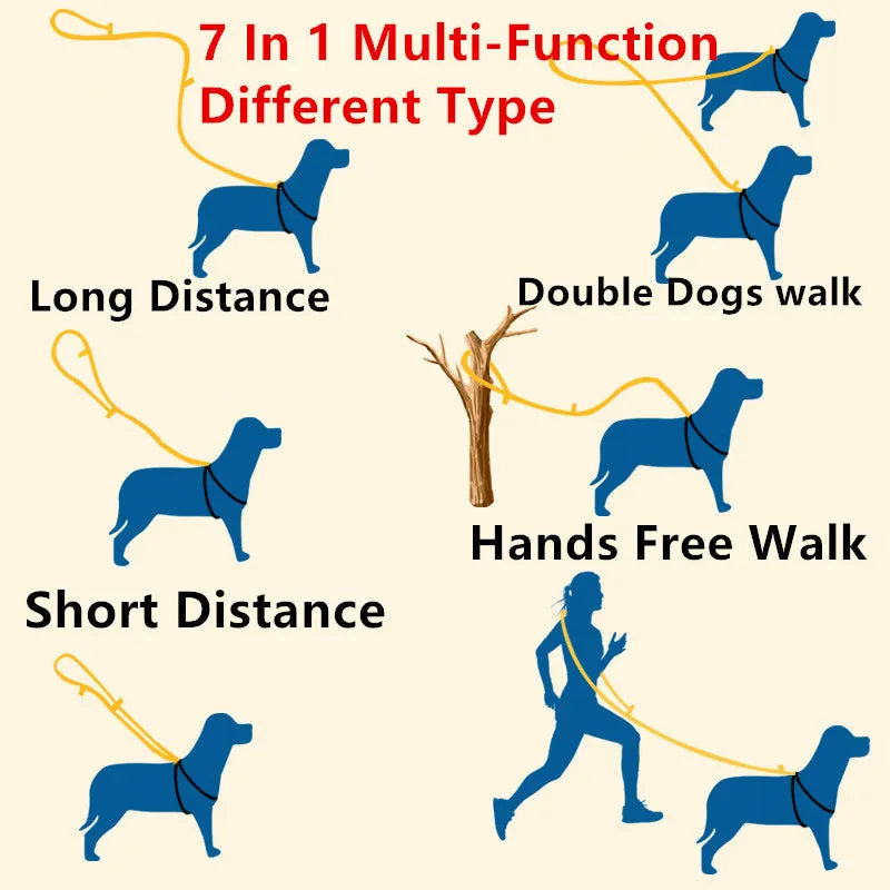 Experience ultimate freedom and control while walking or running with the FlexiStride Hands-Free Dog Leash . For active dog owners, it's often a challenge to keep their hands free while jogging, or to control two dogs simultaneously without leashes getting tangled. This multifunctional leash solves this problem with a modular design that adapts to any situation: from a hands-free running leash to a double leash for two dogs.
