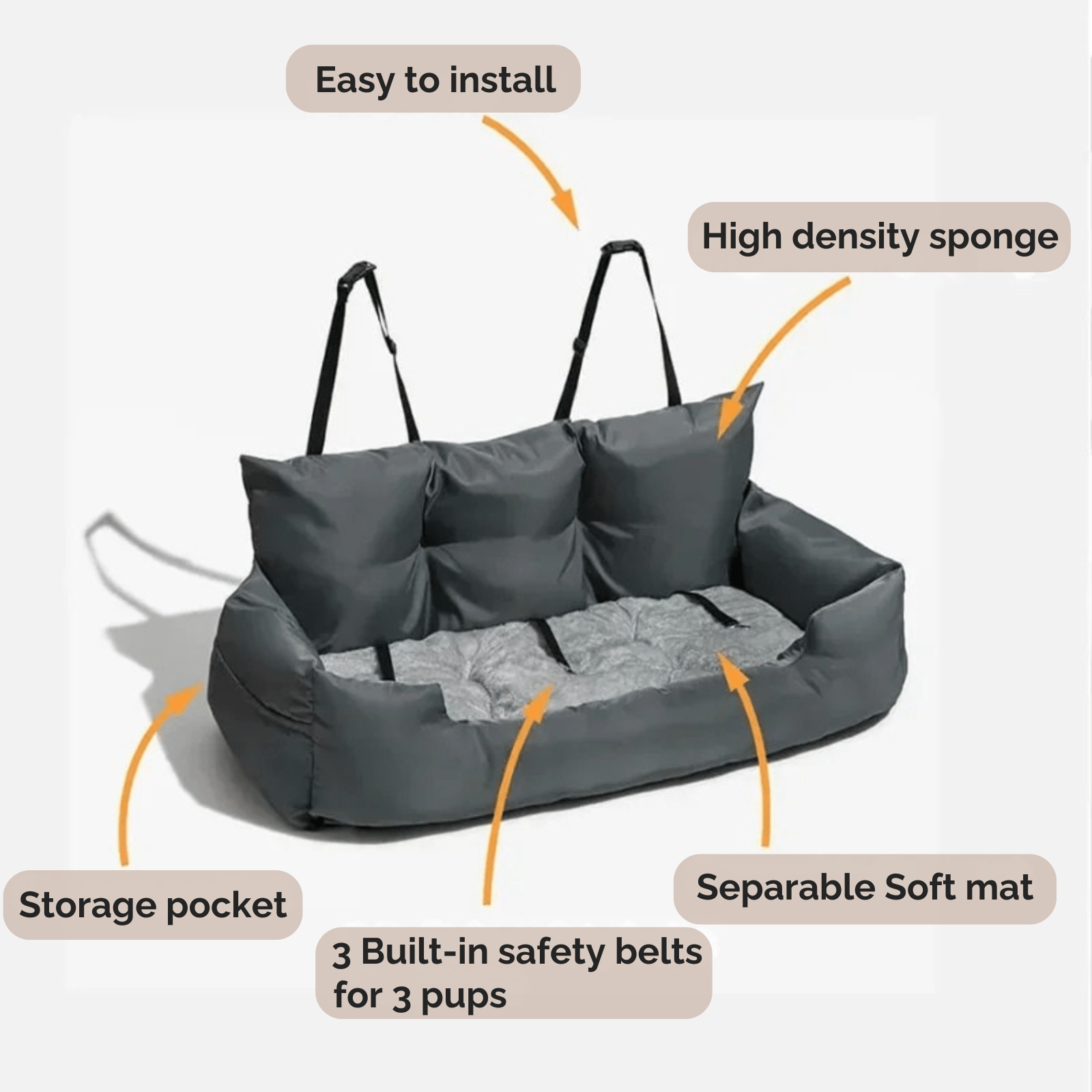 The non-slip base and adjustable nylon straps keep the cover securely in place, even during sudden braking. An integrated seat belt prevents your dog from jumping out of the seat. Practical: the cover is easy to install and completely removable for washing. Both the cover and the filling are washable for a fresh and hygienic travel environment.
