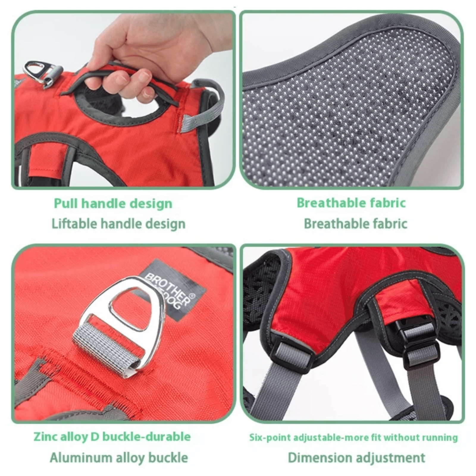 This adjustable harness is perfect for your large or medium-sized dog. Made of durable, waterproof Oxford fabric, it offers safety, durability, and comfort for any walk, workout, or run.