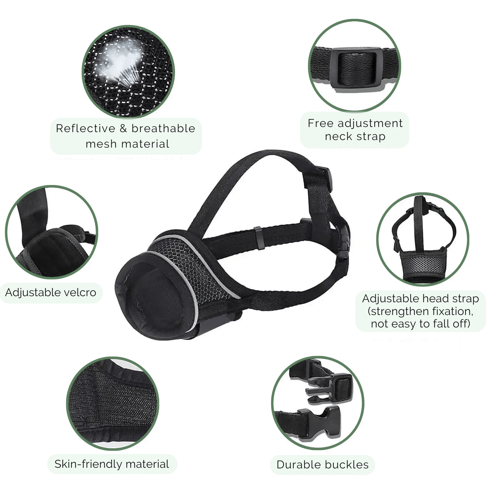 The muzzle features an adjustable ring, allowing you to easily adjust it for a perfect fit on dogs of all sizes. The lightweight and soft material minimizes discomfort while still providing effective protection.