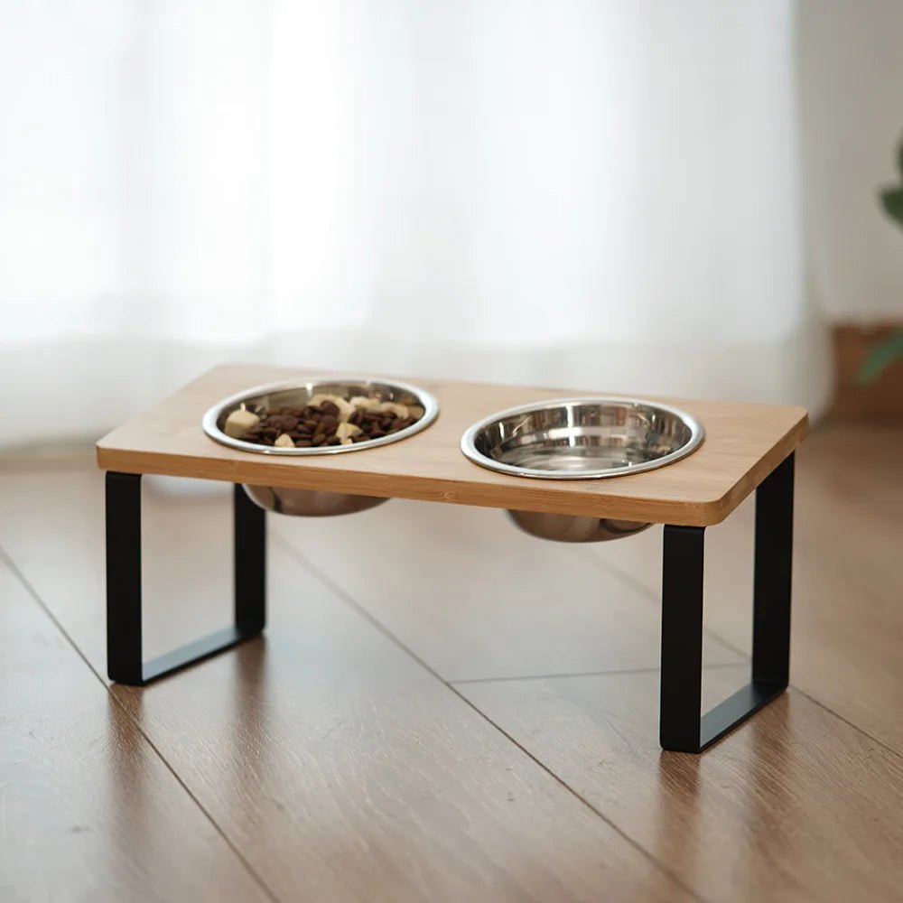 De stevige standaard van hout en bamboe zorgt niet alleen voor een natuurlijke, moderne uitstraling, maar biedt ook stabiliteit tijdens het eten. Dankzij het verhoogde ontwerp eet je huisdier op een comfortabele hoogte.