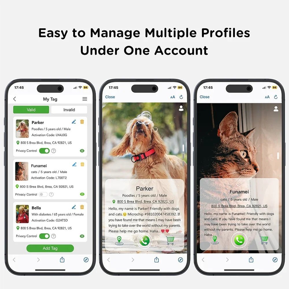 Met duale bescherming biedt de QR-code functie extra zekerheid: als je huisdier verloren gaat, kan iemand die het vindt de QR-code scannen om contactinformatie te verkrijgen. Zo heb je altijd een back-up om je geliefde huisdier te vinden.