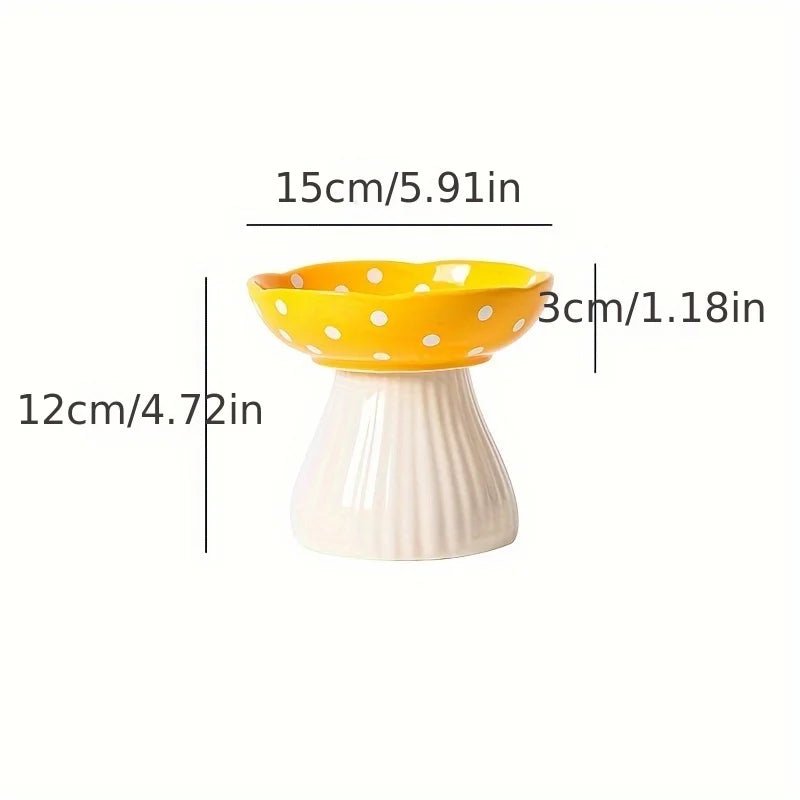 Verhoogde Keramische Kattenvoerbak - Paddenstoelvorm